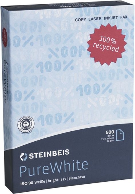 Ein Zeichen für Umweltschutz Steinbeis PureWhite Recyclingpapier mit 90% Weiße. Ein modernes ökologisches Statement Qualitätspapier für anspruchsvolle Office-Kommunikation mit besten Resultaten – multifunktional einsetzbar.